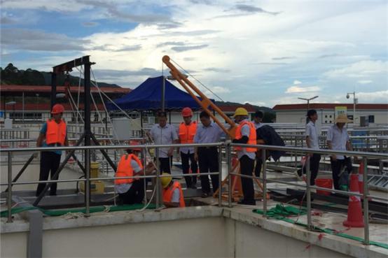 “深洞”中實施維修。經(jīng)過長達近8個小時堅持不懈的帶水搶修作業(yè),維修人員終于在池底找到另一半斷裂的葉輪,并成功將攪拌機葉輪拆卸下來。剩下的工作,則更需要潼湖水廠和衷共濟、攻堅克難,把斷裂的攪拌機葉輪焊接回原處。在高溫炙烤的悶熱天氣下,維修人員不負眾望、排除萬難,順利完成維修任務(wù),2組高效反應(yīng)池得以及時恢復(fù)正常使用。