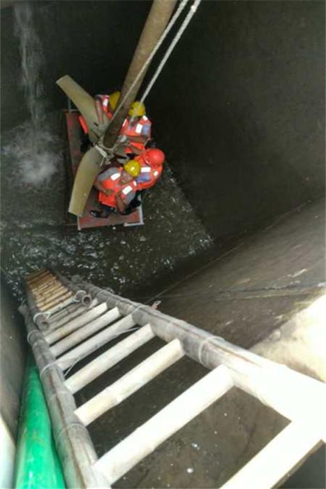 3.5米,需在水下搭建工作平臺;三是攪拌機槳葉較重,需在高效池面用繩索綁定吊穩(wěn)槳葉,以確保拆卸安全,整個槳葉拆卸過程相當(dāng)困難。