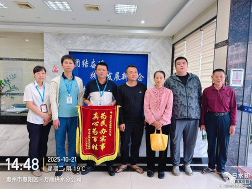 一面錦旗,承載著群眾的認可,更傳遞著沉甸甸的責任。惠陽水務公司將始終堅持“惠民供水,陽光服務”理念,持續(xù)推進服務前置、重心下移,依托網格化管理織密“主動回訪、靠前服務”網絡,以更快響應、更實舉措、更暖態(tài)度解決群眾用水難題,讓汩汩清泉流進千家萬戶,更流進百姓心坎。